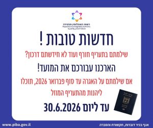 עם זאת, ברשות האוכלוסין מבהירים: מדובר בפתרון זמני בלבד, והציבור נקרא שלא להמתין לרגע האחרון. תוקף ההארכה יפוג באופן סופי בתאריך 30.6.2026, ולאחר מכן לא תתאפשר יציאה מהארץ עם דרכון שאינו בתוקף.